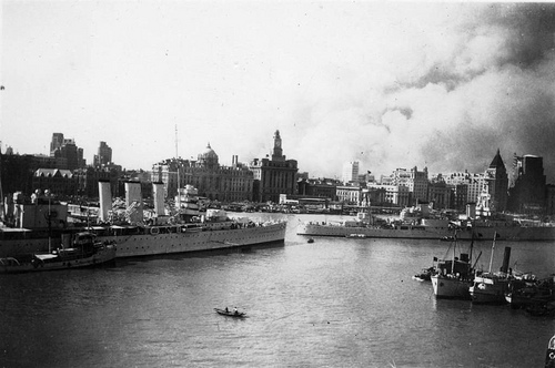 The Sino-Japanese War began slowly. In July 1937 the Japanese Army, in response to an exchange of gunfire with Chinese forces around the Marco Polo Bridge outside Peking, launched an unauthorised operation to conquer northern China. As the Army occupied Peking, the Navy moved into position around Shanghai and, with echoes of the 1932 incident, prepared to begin land operations around the Chinese capital. Shanghai was home to many settlers from the West, with the British and French in particular having large populations in the International Settlement area of the city. A large international fleet was often to be seen in and around the Huangpu River, flying the flag and ensuring the ‘Open Door’ remained so.